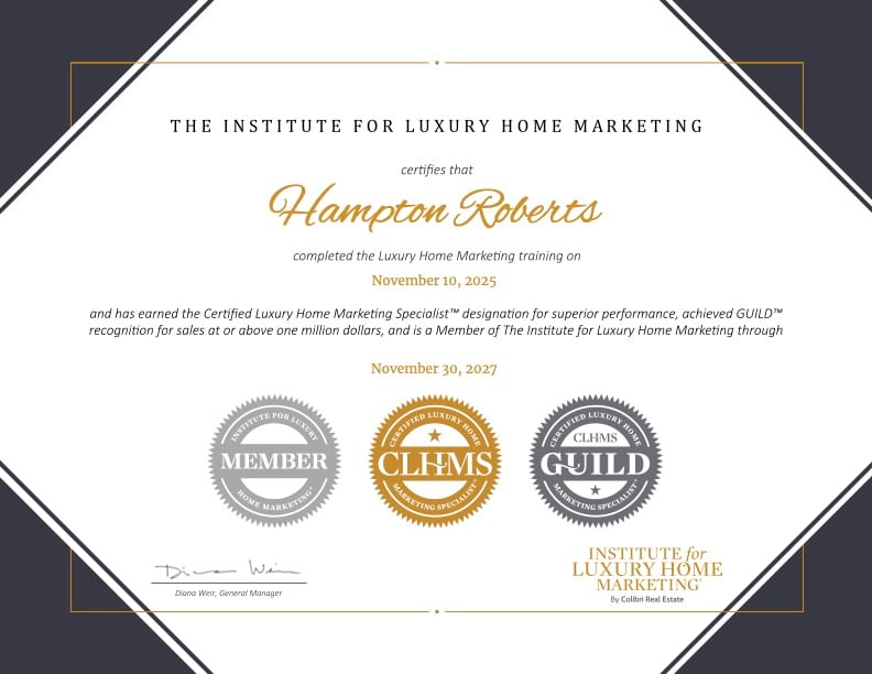 We are proud to announce that Hampton Roberts has earned multiple internationally recognized luxury real estate designations, reflecting advanced training, proven performance, and a continued commitment to serving clients at the highest level of the market.